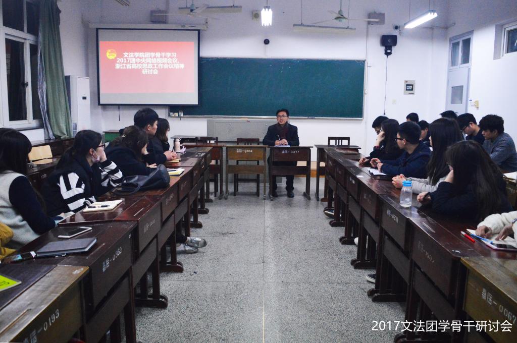 研讨会第二部分,就2月21日召开浙江省高校思政工作会议精神做介绍,再次强调把“立德树人”作为高校立身之本,要求青年团学骨干做马克主义的坚定信仰者、积极传播者、模范践行者,守好作为学干的“一段渠”。在第二课堂积极发挥团学骨干的作用,坚持正确的思想引领,加强对青年的联系。