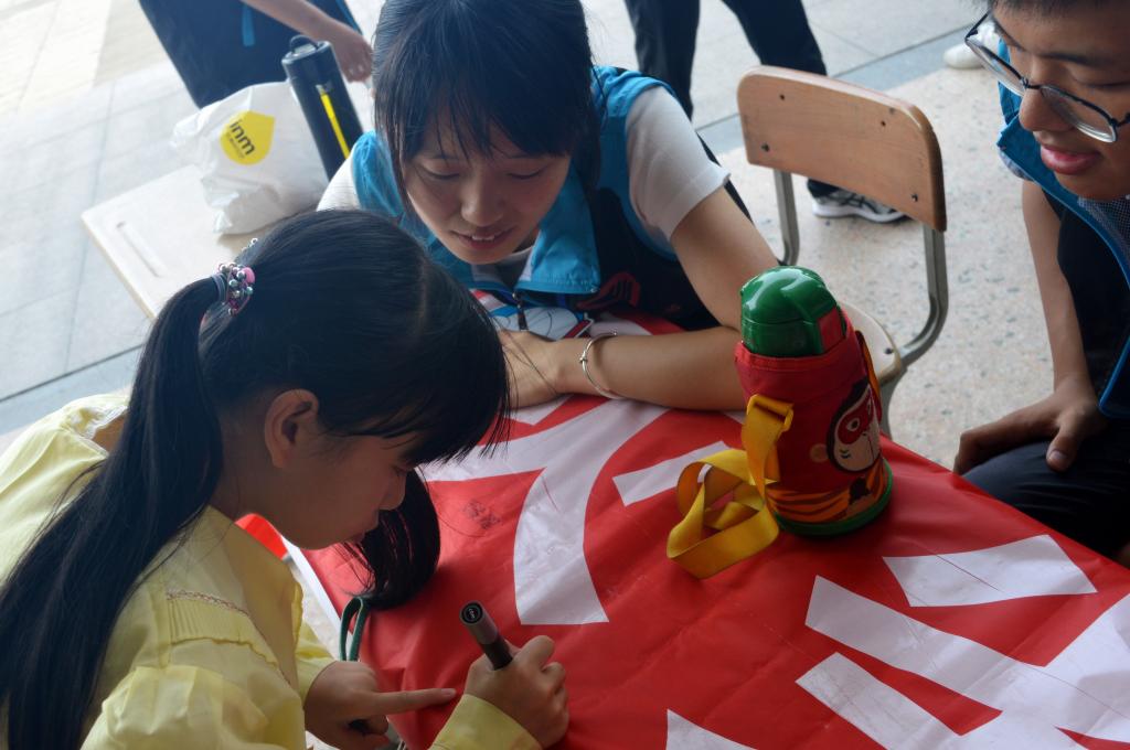 中午,志愿者们在杨庙小学展开“剿灭劣V类水,青春护航天凝”的横幅,鼓励小员工们写下自己的签名和想说的话,倡议同学们一起加入到保护家乡环境的队伍中来,让家乡的水更清、天更蓝;志愿者们还向同学们宣传普及了相关的环保知识,并鼓励小学朋友学习环保知识,提升环保意识。