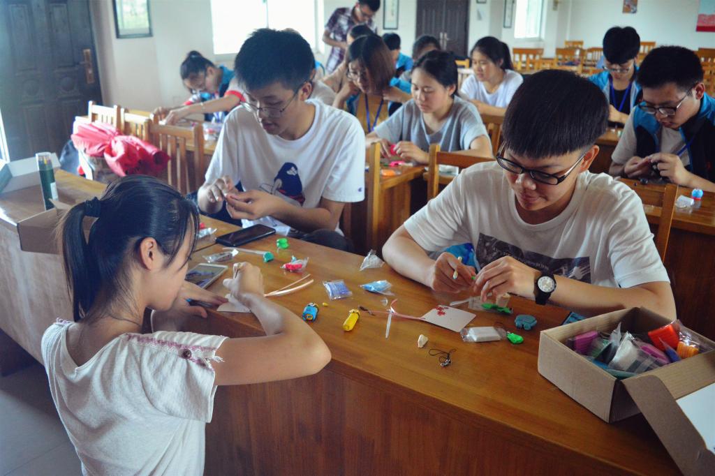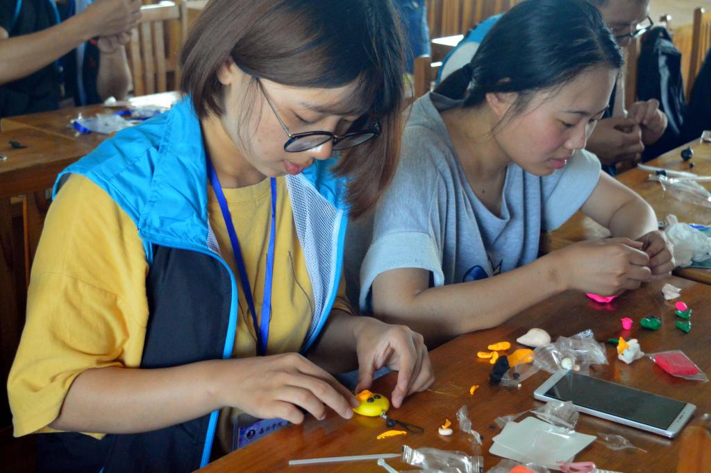 上午9点,志愿者们开设了一堂支教手工绘画课,以“Love Green爱绿护绿我以我手绘天凝”为主题,用软陶泥和绘画的方式,表达对建设美丽天凝的美好愿望,将想象中的天凝制作出来。在此次活动中,志愿者们和员工们共同合作、共同绘制,期间还采访了员工们的创作灵感与感受,这不仅使大家与天凝员工搭建起了友谊的桥梁,更是提高了员工们担负起保护家园的责任意识感。最后,志愿者们还邀请大家带着作品与横幅一起合影留念。
