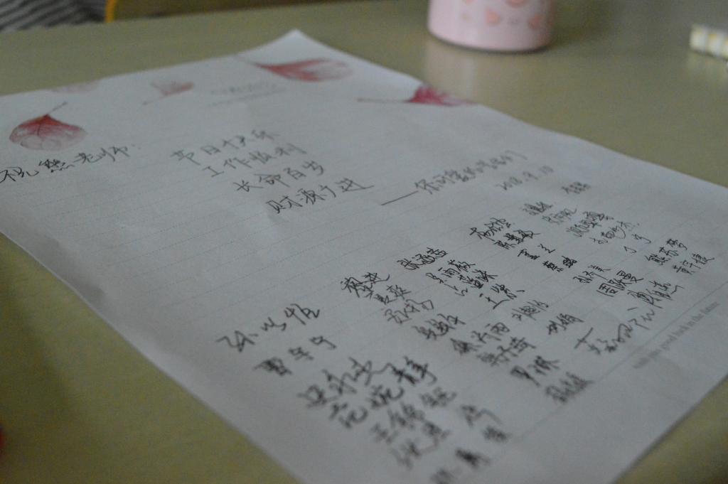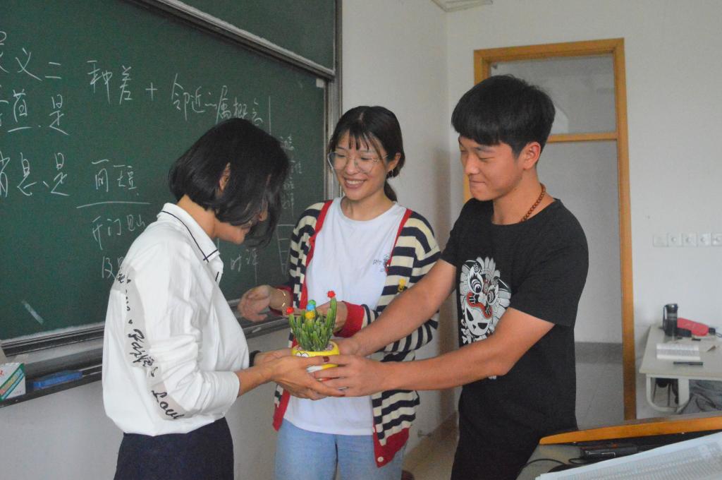 本次活动分为向任教教师献礼和向学工办老师送祝福两个部分。首先是汉语言173的同学们在班长的引领下,给任课老师写了承寄感恩的明信片,并由班长代表全班同学向任课老师献上绿植,送上祝福。其次,同样也是在班长的带领下,其他同学向学工办的老师也献上了自己的一份心意,表达了祝福。这活动的过程中,无论是员工还是教师,都深有感触。