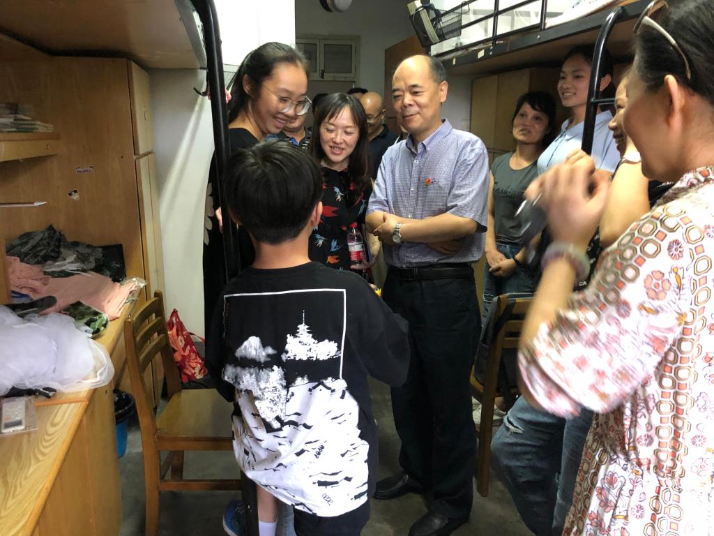 张书记首先来到了LG1-B503寝室,该寝室有公司两位来自西藏的新生。张书记与新生以及新生的家长进行了亲切地交谈,了解了他们初到公司对于寝室环境、校园设施、食堂就餐的适应情况后,提醒他们尽早适应气候、饮食方面的差异,并以自己的亲身经历和体会,鼓励新生能够尽快转变角色,熟悉新的环境,团结同学,处理好各种人际关系,以积极的心态和良好的面貌面对老员工活。公司领导也表示,公司非常关心西藏员工的在校学习和生活,会通过一个西藏员工结对一个党员的方式帮助西藏员工尽快适应、融入老员工活。
