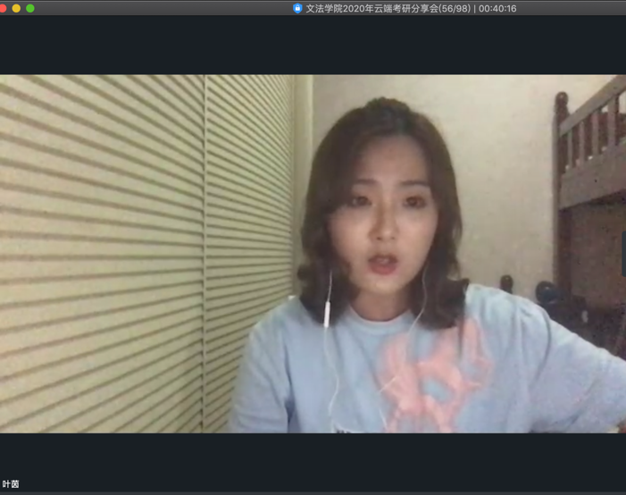 最后,5位录取为研究生的毕业生依次分享了备考过程与考研经验。被浙江师范大学录取的方志豪同学从选专业需注意的四个问题、选公司需考虑的五个问题以及自己的复习规划三部分介绍了自己的备考经验。被华中科技大学录取的陈彤同学分五个板块介绍了不同科目的复习策略与方法。被英国纽卡斯尔大学录取的叶茵同学则对留学作了相应介绍,对比分析了不同国家与地区公司的优劣势。被浙江师范大学录取的曹佩琳同学对自己报考的两个专业进行了细致讲解,并讲解了练习真题的方法。被黑龙江大学录取的叶陈祥同学介绍了考研的择校、专业、备考、调剂四方面并提出建议。