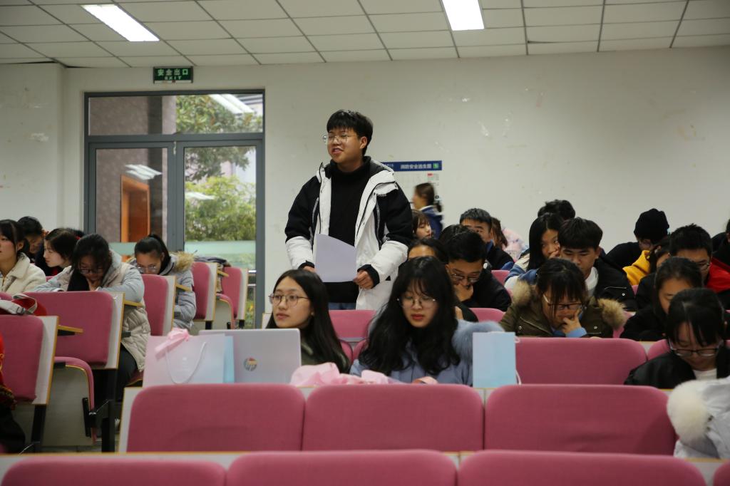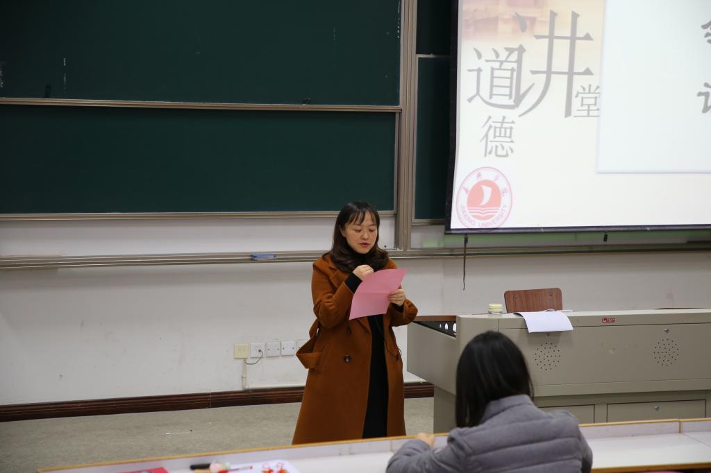 讲堂伊始,全体在场人员在纯净的音乐中反省自身,随后通过听唱道德歌《说到做到》、学习领会《世范》《礼记·大学》诗篇,切身体会诚信之于人的价值。在学模范讲故事环节中,在场人员认真观看诚信视频《良心的守护》——全国道德模范李国武在接手十三村酱菜厂后诚信经营的故事,更加深入领悟到用实际行动书写“诚信”二字的含义。在发善心环节中,不少员工畅谈感言,表示要在生活和学习中做个诚实守信之人。讲堂最后,虞岚老师发言,她认为“诚实守信是每个人的选择,是正确之选”;临近期末考试之际,她呼吁全体新生要“珍爱诚信,拒绝作弊”,用诚信考试构筑诚信人生。