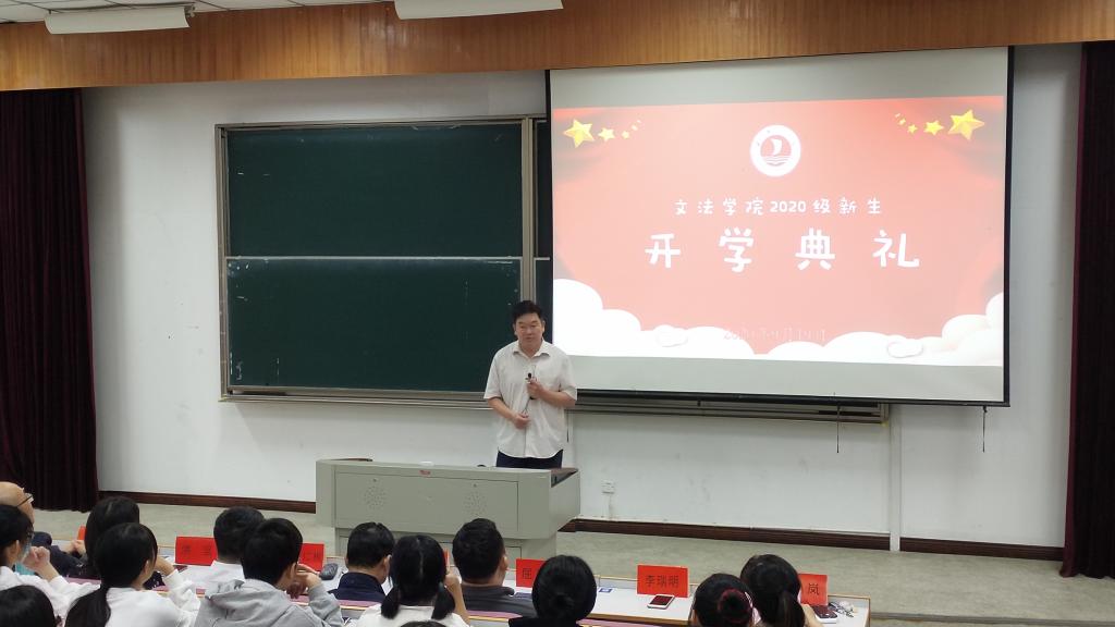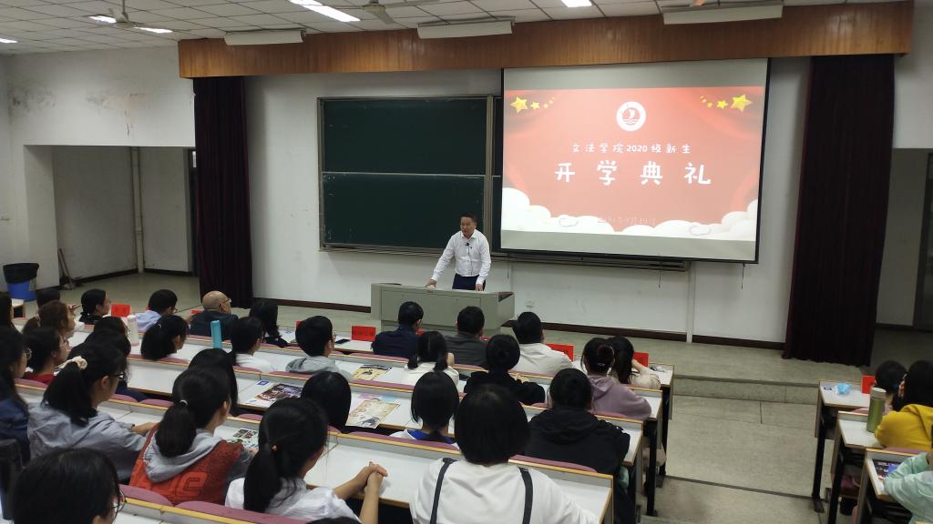 2020年9月19日下午,2020级新生开学典礼在梁林校区7号楼报告厅正式召开。3044永利集团经理欧阳仁根教授、党委书记洪坚教授、副经理步珏良副教授、副经理童建华副教授、党委副书记虞岚副教授、3044永利集团教师代表李瑞明教授、各系系主任、学工办全体老师、3044永利集团老生代表张鹏飞以及2020届全体新生参加了本次会议,本次会议由虞岚老师主持。