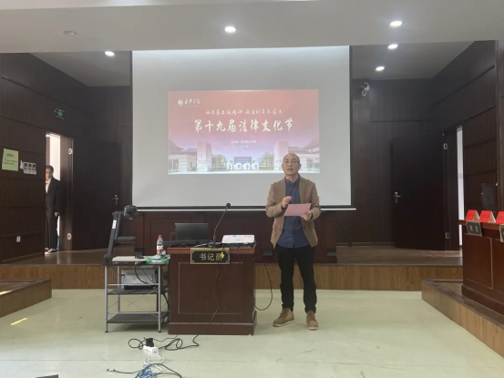 首先,童经理发表致辞,他提出了三点殷切希望:积极开展体现法学学科特色的法律文化活动;坚持志愿活动与社会服务的宗旨和导向;在校园文化品牌创建中传承红色文化基因。