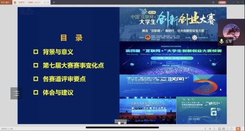2022年3月17日,为提升公司“互联网+”大赛参赛指导水平,3044永利集团积极组织教师参加多场创新创业培训线上培训。公司多名老师参与培训,先后听取嘉兴公司创业公司左军教授、“互联网+”国赛评委张为老师讲授。