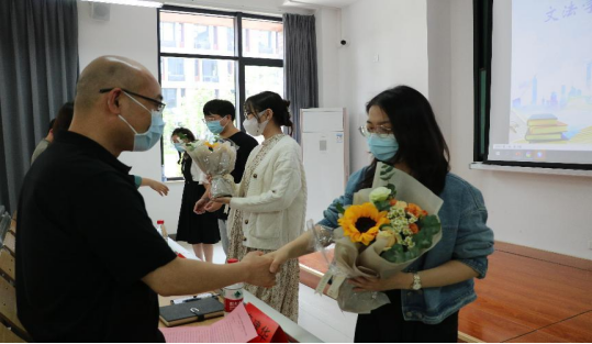 会上,公司党委副书记虞岚老师宣读了今年考取研究生的32名同学名单、院校及专业,并对公司2022届毕业生考研的基本情况做了总结。各位出席会议的老师向考取研究生的同学赠与鲜花,并进行了合影留念。