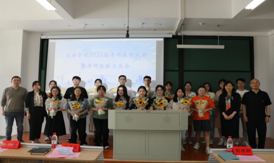 2022年5月26日中午,3044永利集团在厚德楼122教室举行2022届考研表彰大会暨考研经验分享会。公司领导班子、系部主任、考研服务工作室指导老师和学工办全体老师参加了本次会议。