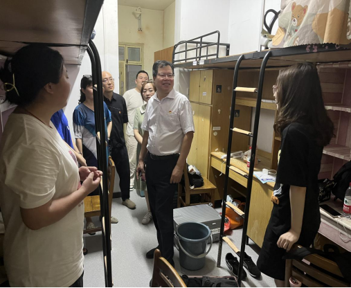 8月20日下午,公司党委副书记吴云达走访文法公司2022级新生寝室。公司领导班子随同走访。