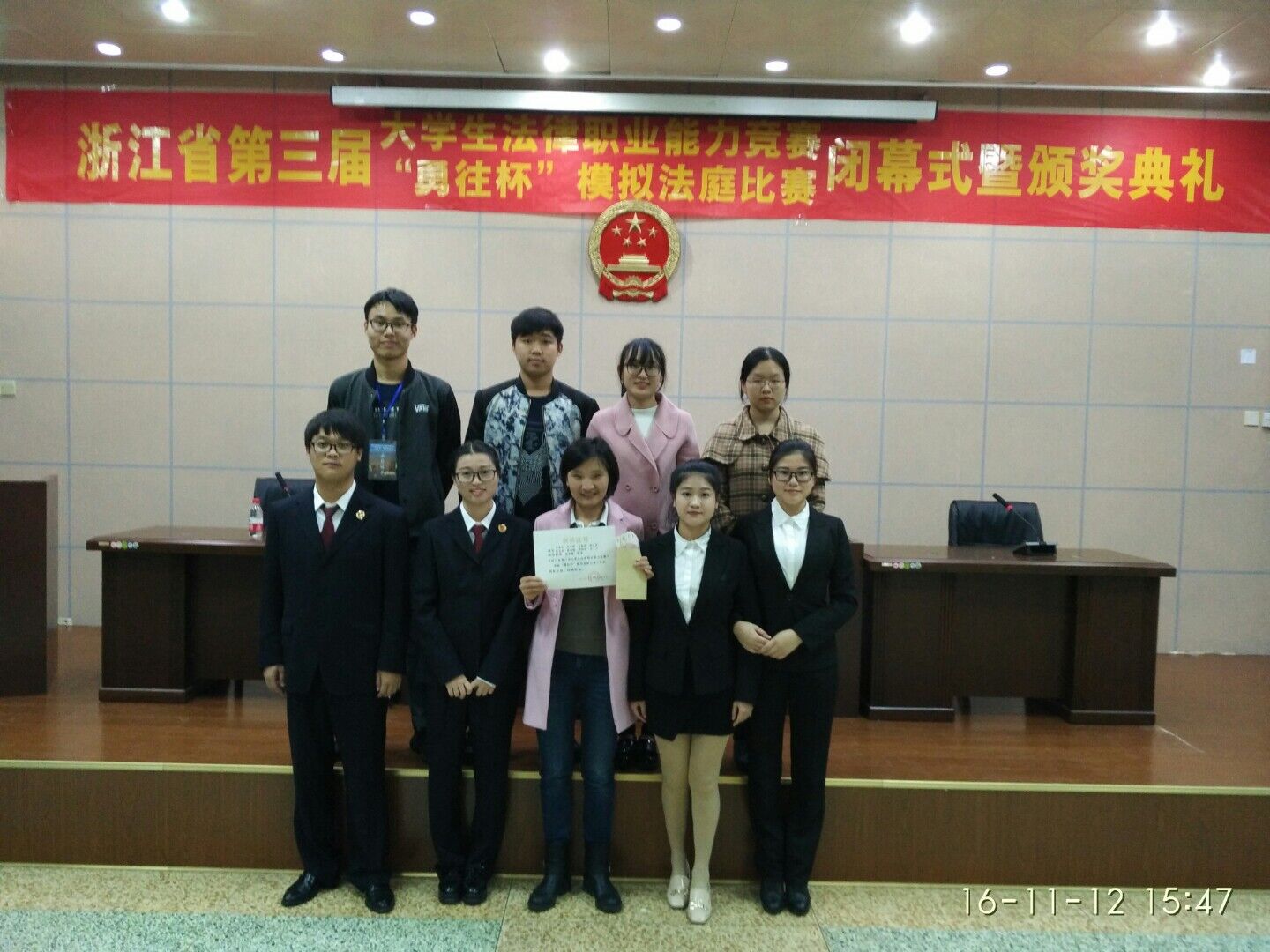 近日,浙江省第三届老员工法律职业能力竞赛落下帷幕。本届浙江省老员工法律职业能力竞赛包括模拟法庭类和法律演讲类两部分,共有32所高校参加了此项赛事。公司领导高度重视此项赛事,从校内选拔到省赛的参与等各个环节院领导都给予了充分地关注。在院领导的关怀和重视下,公司由马佳佳等8名同学组成的“法苑之星”队在模拟法庭类比赛中获得了团体二等奖,黄鑫怡、童夏丽两位同学在法律演讲类比赛中获得二等奖。