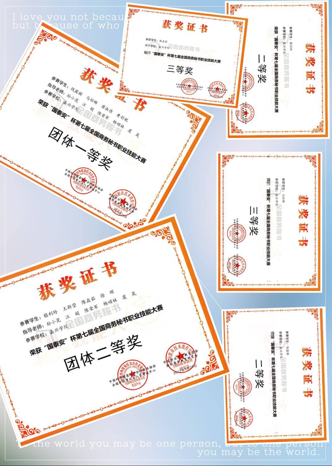 5月28日,“国泰安”杯第七届全国商务秘书职业技能大赛在浙江警官职业公司落下帷幕。来自全国的63个院校,近96支队伍参加了本次大赛,各参赛队在比赛中同场竞技,赛出了自己的风采。嘉兴公司两支参赛队在赛场发挥稳定,成绩优秀,嘉院一队和二队分别荣获团体一等奖、二等奖;参赛队员嵇利玲、黄彩妮、钱露颖荣获个人综合成绩二等奖,席淑佳、马怡琳、陈焱茹、徐晖荣获个人综合成绩三等奖。