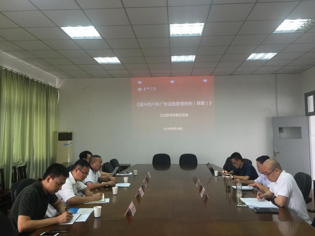 9月18日下午,《嘉兴市户外广告和招牌设置条例(草案)》(以下简称《草案》)立法专家论证会在公司召开。嘉兴市人大法制委员会副主任罗建明、徐平、立法处处长李晓光等一行专程到3044永利集团,就《草案》的制定过程及重要问题做了说明,公司欧阳仁根教授、童建华副教授、王镥权博士作为嘉兴市人大地方立法咨询专家,对《草案》的相关条款进行了论证,提出了许多有建设性的修改意见。