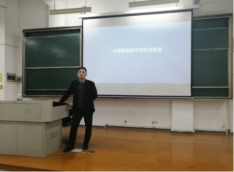 桐乡市政协常委、浙江国毅律师事务所主任祝丹华律师结合自身近三十年的律师职业经历,围绕着法科员工的律师职业选择问题与同学们进行了深入浅出、生动幽默的讲解和交流。祝主任首先从法科生就业的行业分布、专业特点以及国内法治背景等宏观方面展示了我国法治事业的光明前景,并以此为基础详细介绍了法科生从事律师职业的优势和意义,指出从事律师行业,是对中国法制建设的使命担当,是实现人生价值的追究,是体面职业的规划,同时可以实现对高收入的期待。然后,祝主任结合个人律师职业生涯和多年律所管理的经验,阐释了做律师的基本素质和标准问题,指出律师职业必须具有责任心、有一定的个性、思维缜密活跃、韧性和毅力以及愿吃苦、能吃苦的基本素质;最后,祝主任结合鲜活的案例,就“律师该怎么做”的问题进行详细的讲述,指出,当代律师应当紧跟时代脚步,坚持正确的政治方向、选择正确的职业定位、提高学历和专业知识、增加社会阅历、提升人际交往能力、从而做一名新时代的优秀律师,并特别结合嘉兴在国家政治和地理方面的重要地位,勉励同学们多读书,多出研究成果,学会聊天讲故事,特别守住道德底线,争做红船旁的优秀律师后备人才。