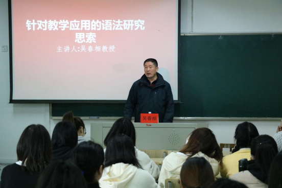 吴春相教授结合自己的亲身经历,引用众多事例给同学们讲述了语法教学的目标是为了培养员工的汉语表达能力,以及如何正确地进行语法研究与做好语法研究的三个重要环节:充分观察,科学描写和合理解释。期间,吴教授教导学子一定要充分观察生活,做好学术研究。