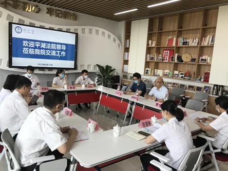 座谈会上,双方就平湖法院法官撰写的学术论文进行了一对一的交流研讨。本次研讨是公司法学专业深化与法院学术交流的重要活动,旨在发挥公司法学理论研究的优势,提升青年法官学术水平。