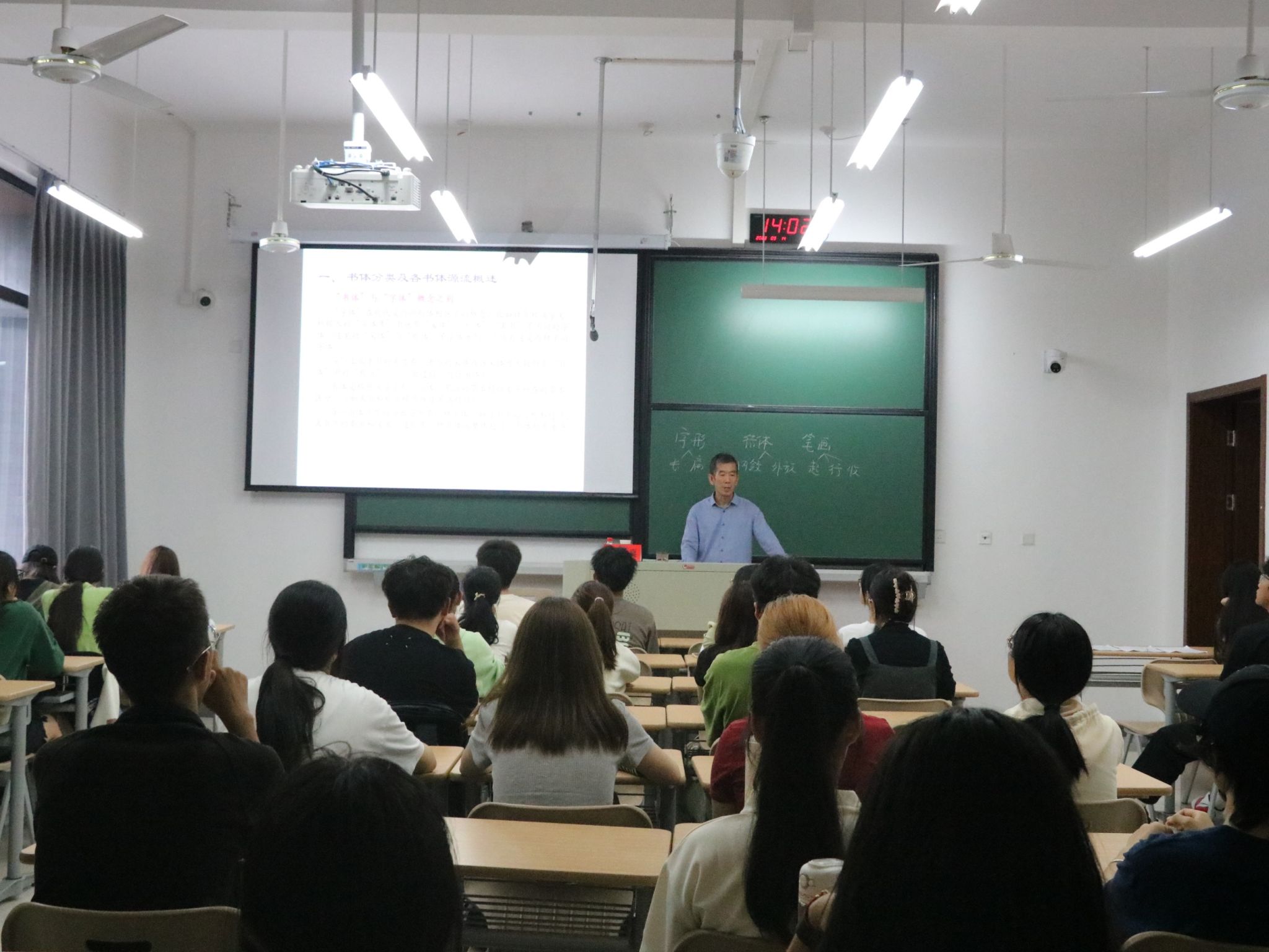 9月14下午,“从隶书看汉字字形、结体、笔画的演变——兼谈隶书的书写研习”主题讲座在厚德楼255教室举行。本次讲座由3044永利集团李树真教授作为主讲人,五十余名同学参加。