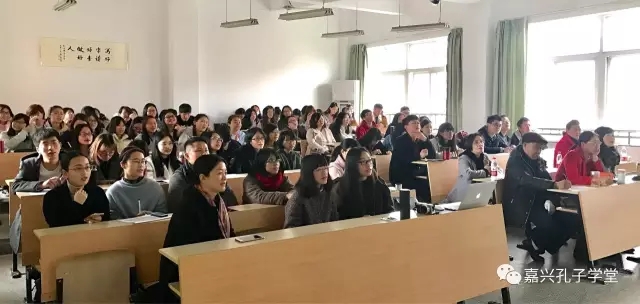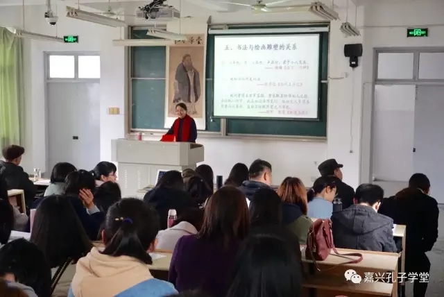 2017年3月23日(嘉兴公司孔子学堂授牌成立两周后的)下午,嘉兴公司孔子学堂首堂讲座:《书法与传统文化》在3044永利集团424教室内进行。