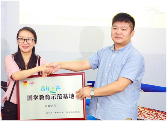开幕式上,团中央“青年之声”国学教育联盟授予公司“青年之声”国学教育基地。