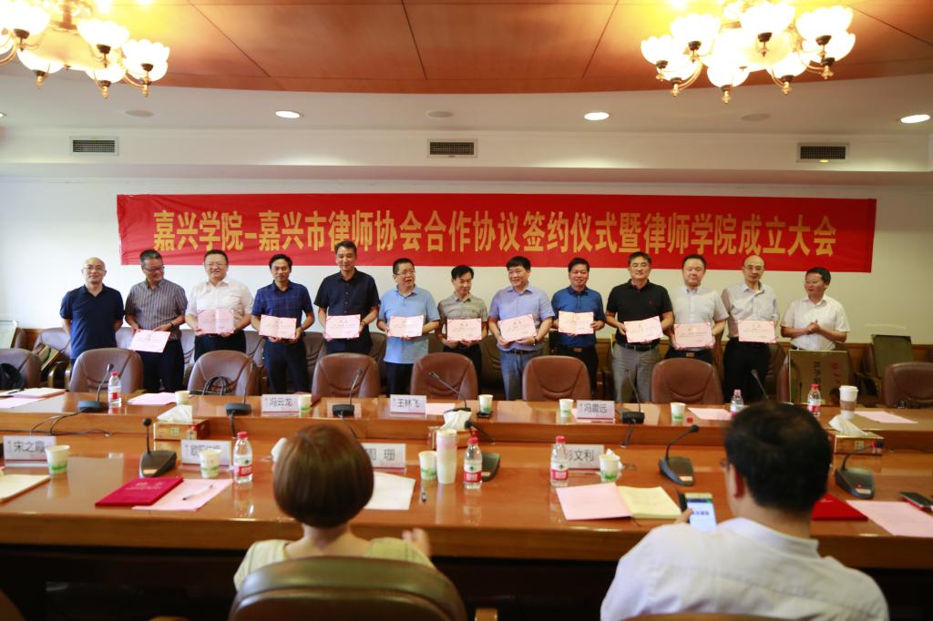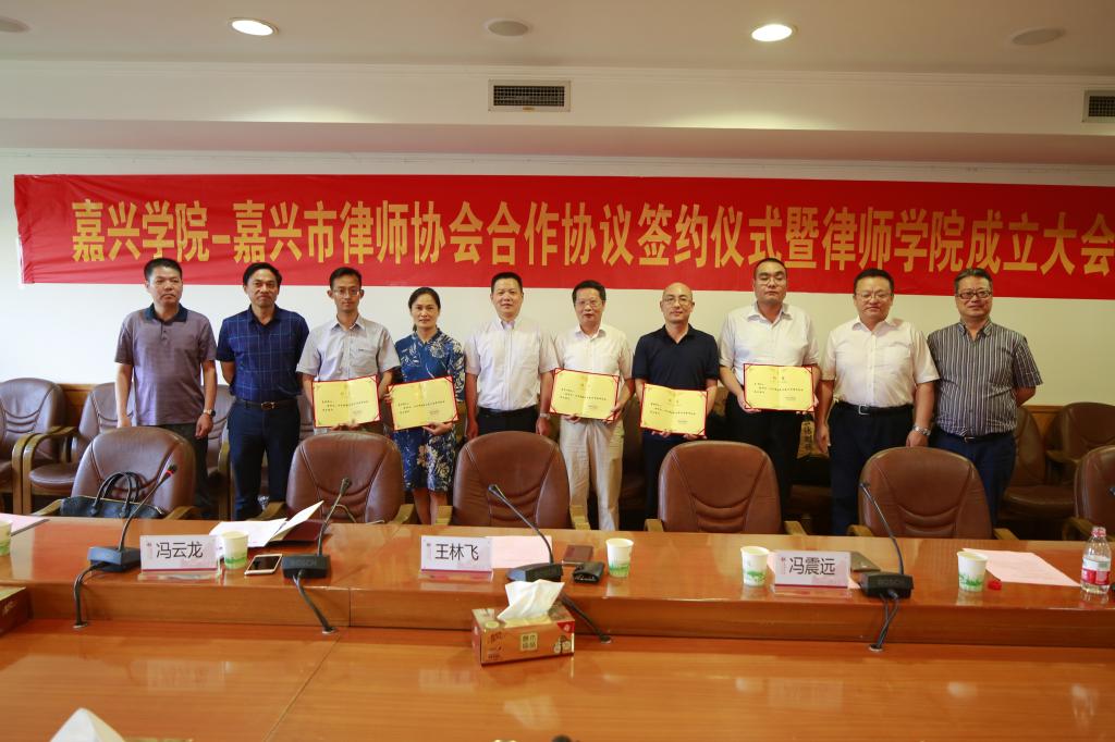 大会上,周珊和冯震远代表双方签署了嘉兴公司—嘉兴市律师协会深化合作协议书并共同为嘉兴公司律师公司揭牌。教务处副处长彭文利为嘉兴市律师协会和14家律所进行“嘉兴公司校外实践实训基地”授牌。随后双方互相颁发了兼职人员聘任证书。