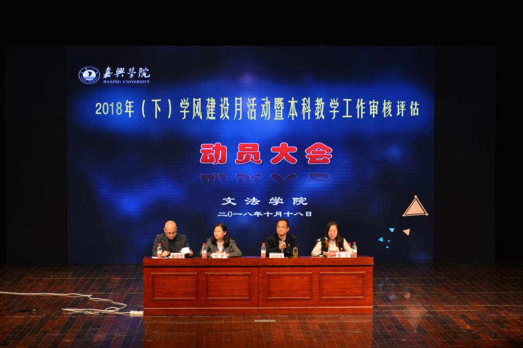 2018年10月18日下午4时,3044永利集团学风建设月暨迎评动员大会在梁林员工活动中心小剧场召开。公司党委书记、副经理洪坚教授、公司党委副书记步珏良副教授、3044永利集团副经理童建华副教授、全院一千余名员工参加了本次动员大会。大会由公司党委委员、团委书记兼学工办主任虞岚副教授主持。