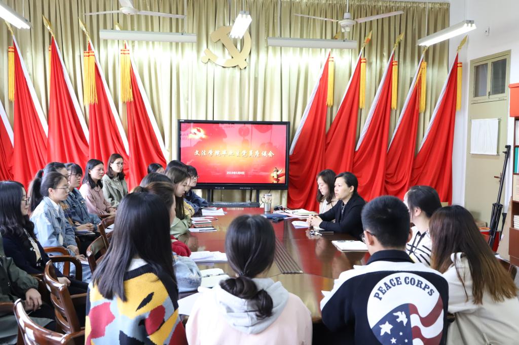 汉语言文学专业党支部顾佳欢同学代表全体毕业生党员作青春承诺,她表示,将牢记“方正为人 勤慎治学”的校训精神和“厚德 崇文 传薪,良知 铁嘴 硬笔”的院训精神,牢记习近平总书记对新时代中国青年的嘱托和要求,以优秀共产党员的标准严格要求自己,将“两个一百年”奋斗目标与个人理想相结合,不忘初心,牢记使命,继续奋斗。