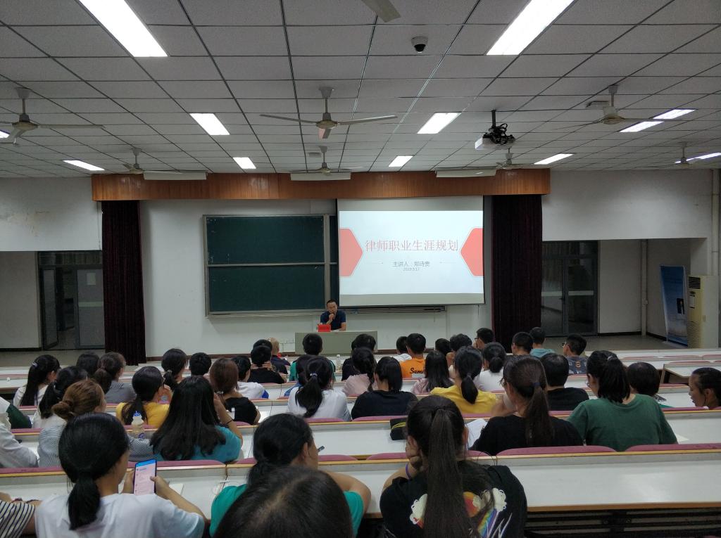 2019年9月17日晚上,浙江开发律师事务所合伙人郑诗贵律师应邀为公司法学专业大一新生开展了题为“律师职业生涯规划”的始业教育讲座。郑律师从律师的职业前景、律师应当具备的素质能力、律师应当养成的良好习惯以及我国司法体制的基本状况,郑律师结合自身的办案实践,深入浅出,生动风趣,给新生上了一堂很好的专业教育课。