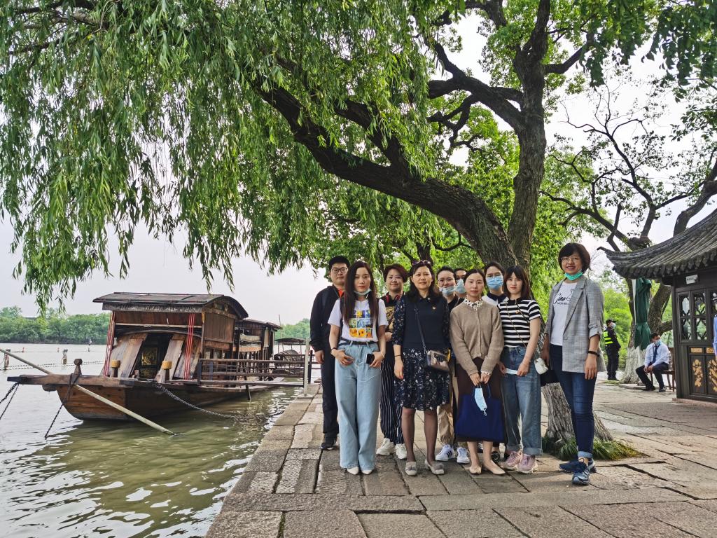 老师们乘坐上画舫船,随着南湖水缓缓前行,仿佛回到了99年前那雄壮的开天辟地历史大画卷之中。公司党委书记洪坚借此给老师们上起了“水上课堂”,她结合中共一大的历史背景,围绕“红船精神”的产生、发展和内涵,讲述了“红船精神”诞生的历史背景与时代价值,并从红船旁高校教师的使命出发号召新教师争做“四有”好老师,为公司申硕创大而努力,成为“重要窗口”中的“最精彩板块”的先锋、主力!