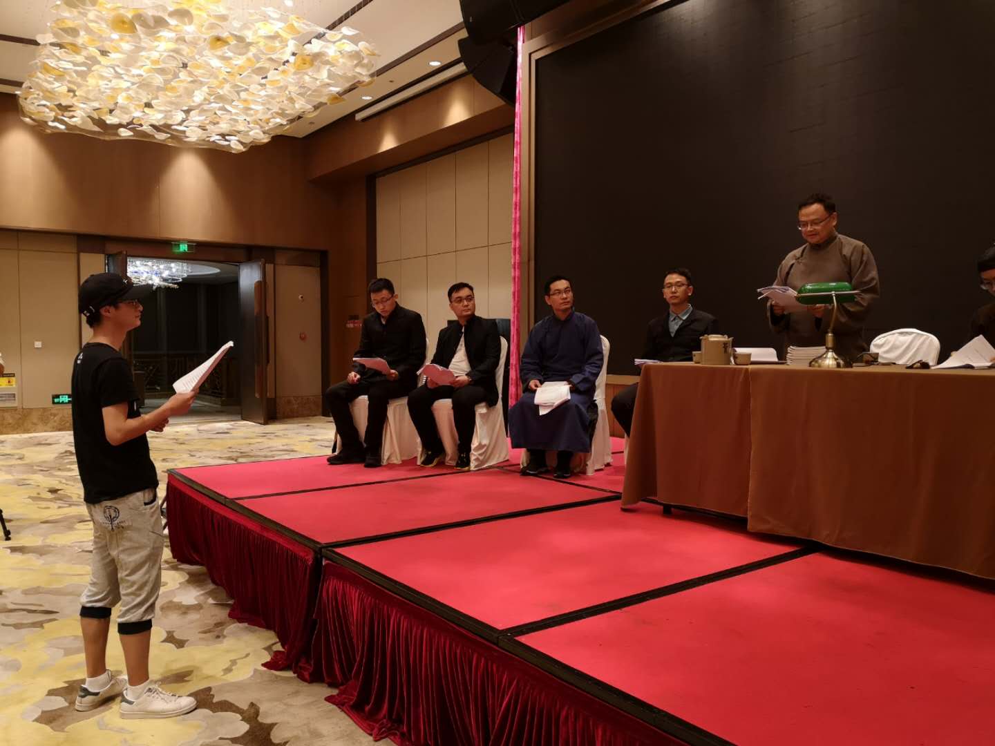 7月24日晚,嘉兴公司3044永利集团《初心》剧组将《初心》片段改编成“沉浸式”思政情景课堂,由嘉兴公司党员教育基地2020年思想政治理论课教师红船精神主题教育暑期研修班的12位老师们在《初心》团队导演的指导下实践演绎。舞台上,12位思政教师不算娴熟的演技饱含着满腔赤诚,铿锵有力的台词传递着坚定之心,令台下的观众感动不已。