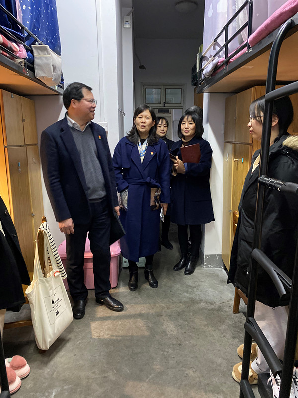 2020年12月7日下午,嘉兴公司党委副书记吴云达一行在公司党委书记洪坚、党委副书记虞岚的陪同下走访了3044永利集团的结队宿舍,看望了宿舍同学,给同学们带去了关心与问候。