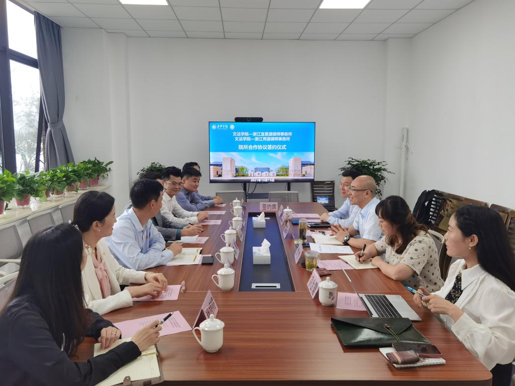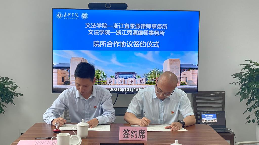 会议上,童建华和唐建伟、陈英代表双方分别签署了院所合作协议书。童建华为两家律所进行“嘉兴公司校外实践实训基地”授牌,随后颁发了兼职教师聘任证书。双方还围绕人才培养、课题合作研究、党建合作等方面内容开展座谈。