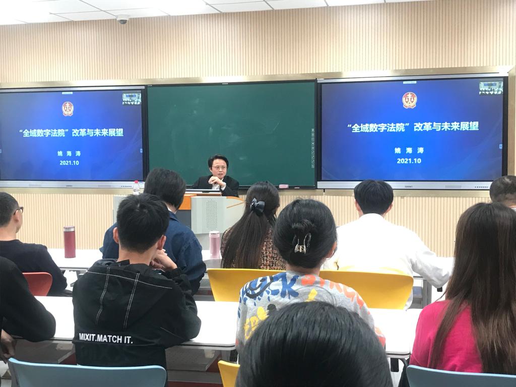在签约仪式上,3044永利集团副经理(主持工作)童建华就校院双方合作情况向来宾作了介绍。校院双方举行了互聘,嘉兴市中级人民法院聘任公司童建华、王小军、李凤琴、宗会霞4位教师为专家咨询委员,公司聘任嘉兴市中级人民法院和南湖区、秀洲区人民法院共10名法官为兼职教师。随后,姚海涛经理为3044永利集团师生作了题为“全域数字法院改革”的专题讲座,全面介绍了全域数字法院改革的背景、内涵与未来发展趋势,让师生们对全域数字法院有了全新的认识,拓宽了师生的眼界,也给法学教师从事相关法学理论研究提供了有益的启发。
