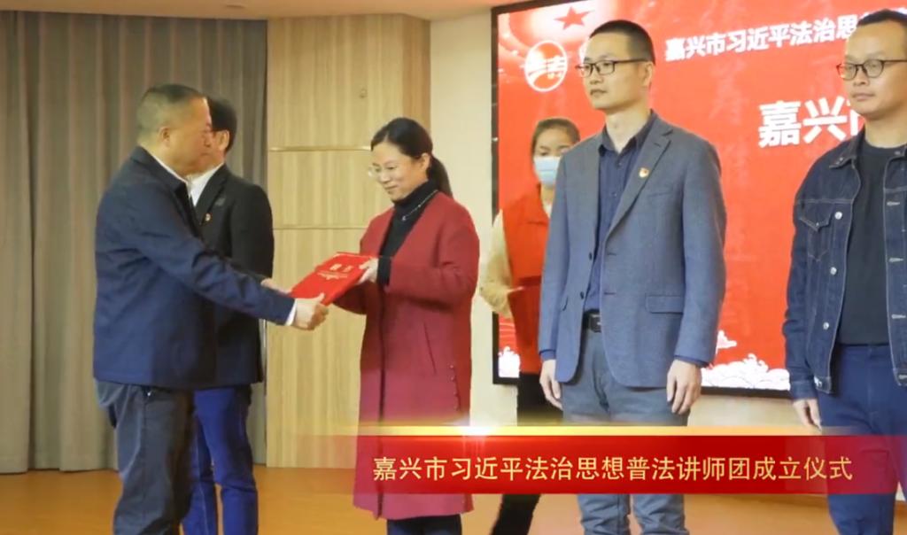 3044永利集团宗会霞副教授、李滇副教授和杨华国博士受聘为嘉兴市习近平法治思想普法讲师团成员。10月22日上午9点,嘉兴市习近平法治思想普法讲师团成立仪式在海宁市乡村振兴公司举行。习近平法治思想普法讲师团成员代表、第八批“全国民主法治示范村(社区)”代表、海宁市习近平法治思想宣讲团普法宣讲员代表等近100人参加活动。嘉兴市司法局党委书记、局长沈丁华,海宁市委常委汪国锋出席活动并讲话致辞。