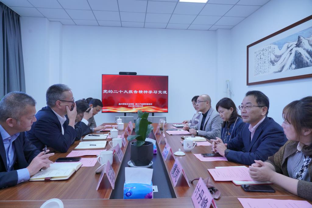 仪式结束后,双方进行了座谈。座谈会上双方就深化院所合作、进一步推进党建共建、法学人才培养机制等问题达成了共识。随后,双方对党的二十大报告精神进行学习交流,对党的二十大报告中“坚持全面依法治国,推进法治中国建设”部分进行了学习讨论。