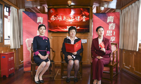 秋日的南湖,微风习习,清波荡漾。10月31日,在一派旖旎风光中,首场“青春思享嘉”党的二十大精神宣讲走进“南湖水上课堂”,在那一艘穿越百年的红船旁,涌动起一股青春的力量。公司初心团队的成员作为红船旁的青年代表认真聆听了党的二十大代表、嘉兴市党员志愿服务中心(96345社区服务求助中心)党支部书记骆叶青,全国人大代表、南湖革命纪念馆副研究馆员袁晶,南湖景区讲解员蒋昕莹三位宣讲员关于党的二十大精神的宣讲,并围绕“初心”这一主题,展开了生动的对话。初心团队成员祖梦凡与大家分享了参与公司原创红色话剧《初心》演出并递交了入党申请书的经历。她青涩的脸庞透露出的是昂扬向上的活力,她说:“我将通过演绎好王会悟这个角色,把‘讲故事’‘传精神’相结合,让人们在真切感受伟大建党精神、红船精神的同时,能够不忘初心、牢记使命!”