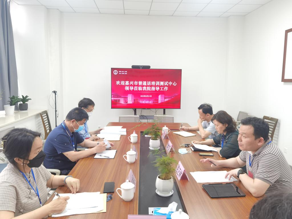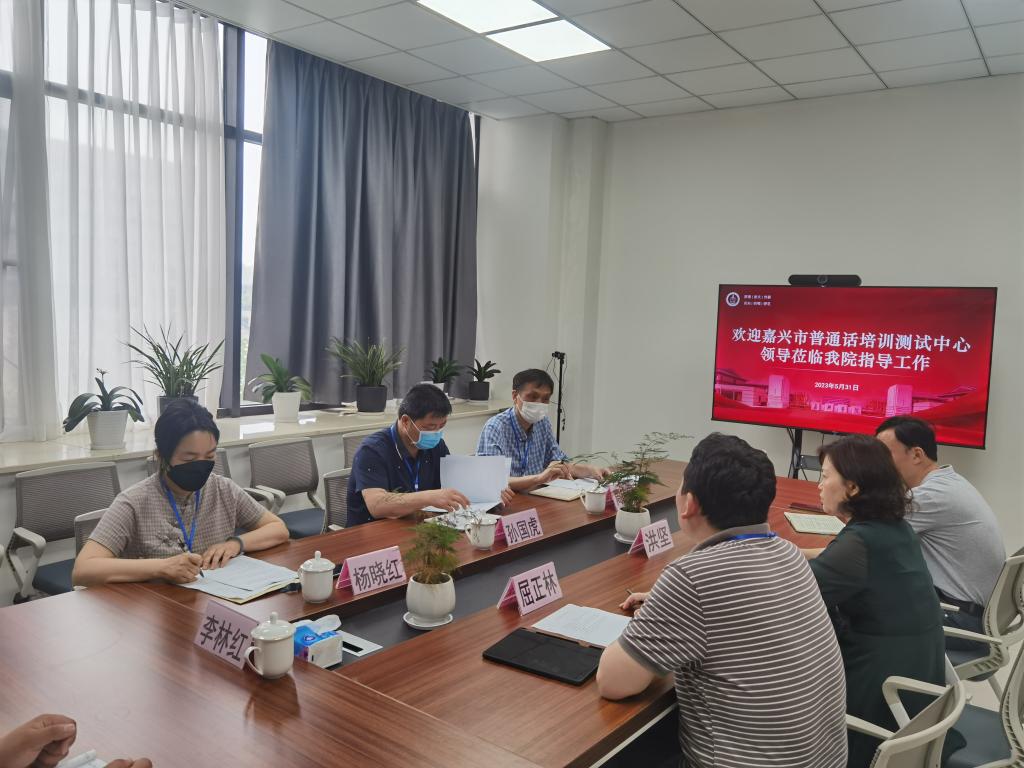 5月31日上午,嘉兴教育公司副经理、嘉兴市普通话培训测试中心主任孙国虎、嘉兴教育公司教务处长周志荣等一行3人来到嘉兴公司普通话测试站,检查测试工作并进行座谈交流。公司党委书记洪坚、副经理屈正林、继续教育公司副经理吴维佳等出席座谈。