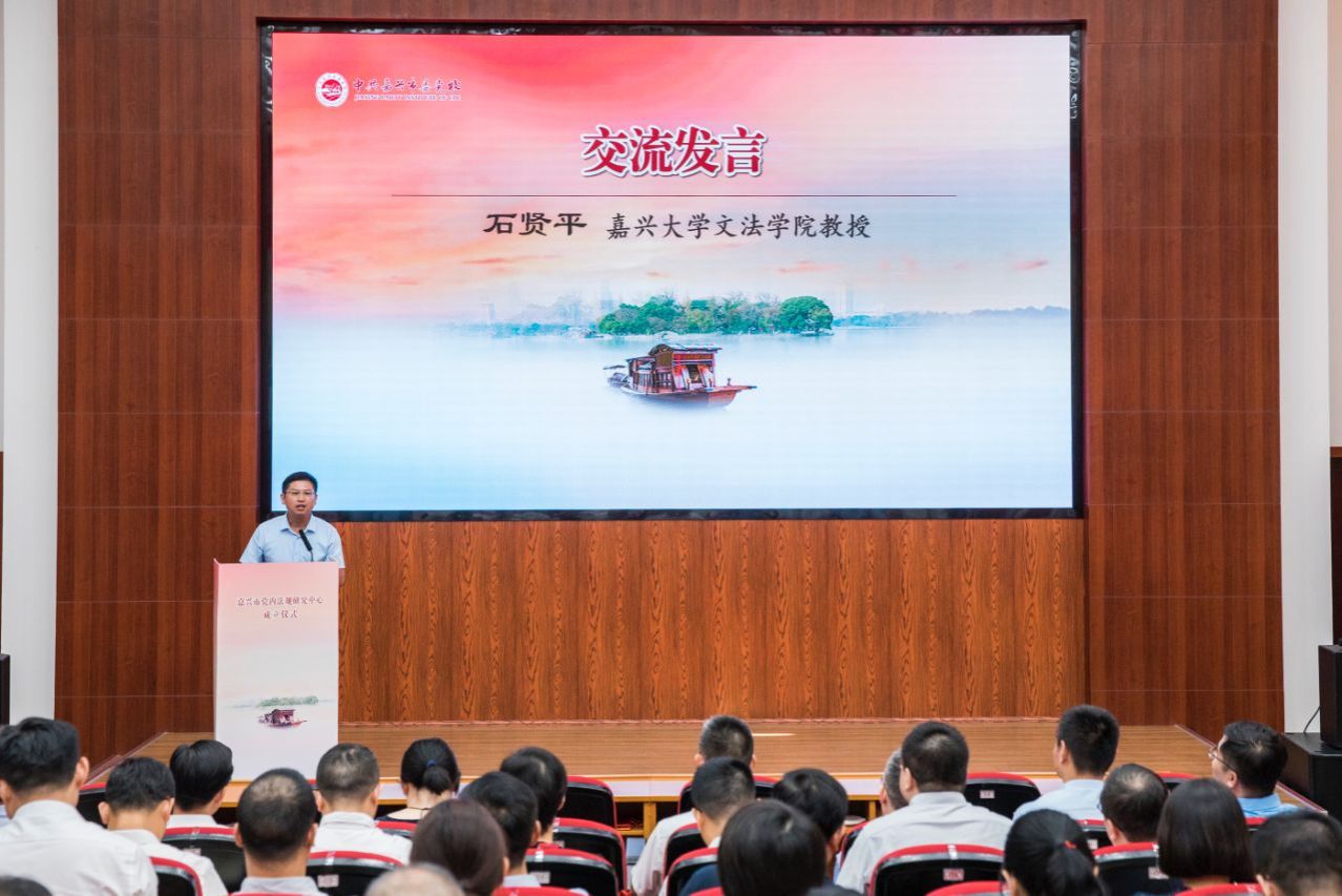 石贤平教授在党内法规研究中心首届专题研讨会上作为特邀嘉宾发言,主要谈了对“党内法规”的认识,包括要加强对党内法规学的研究力度、对《四化协同:基层党规执行的南湖探索》相关研究成果进行归类等。石教授认为嘉兴市设立党内法规研究中心恰逢其时,既是及时贯彻落实三中全会精神的实践需要,也是开展常规党建的工作要求,更是推进嘉兴市政党治理体系和治理能力现代化,打造嘉兴经验和嘉兴样板的迫切需求。