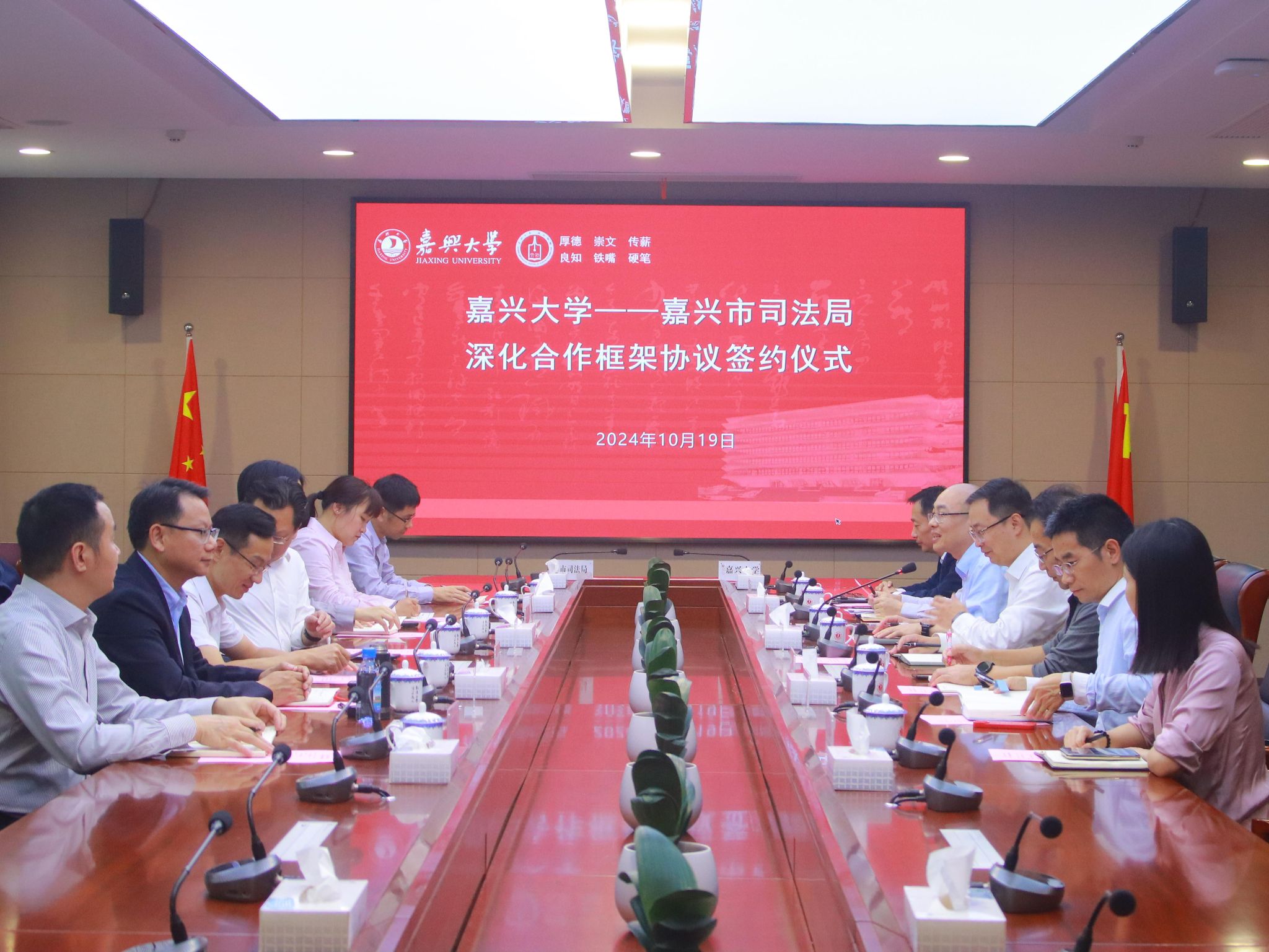 10月19日下午,公司与嘉兴市司法局举行深化合作框架协议签约仪式。公司党委委员、副董事长王立玮,嘉兴市司法局党委书记、局长陈云飞出席会议。