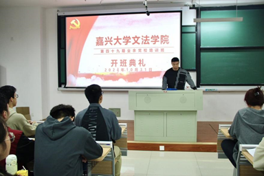 汉语言231班的石烨晨同学作为员工代表向党组织表态,生逢其时,重担在肩。作为红船旁大学的员工我们要以高涨的热情大力发扬红船精神,坚定理想信念,立鸿鹄之志,练就过硬本领,修栋梁之才。在习近平新时代中国特色社会主义思想的指导下积极投身于实现中华民族伟大复兴中国梦的实践,坚持知信行合一,学思用贯通。争取在党课结业时递交一份满意的答卷,早日成为一名合格的共产党员。开班典礼结束后进行了党校第一课:“正确认识中国共产党及党的基本理论、基本路线、基本方略”的学习。