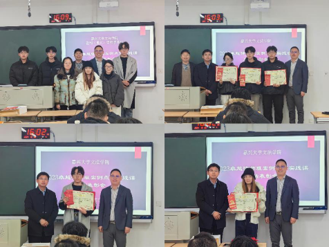颁奖和合影环节结束后,班主任任汝平老师再次发言。他展示了6篇获奖文章,并鼓励同学们通过比较学习,发现彼此之间的差异和不足。任老师希望同学们能够珍惜这次实践机会,不断提升自己的专业素养和实践能力。