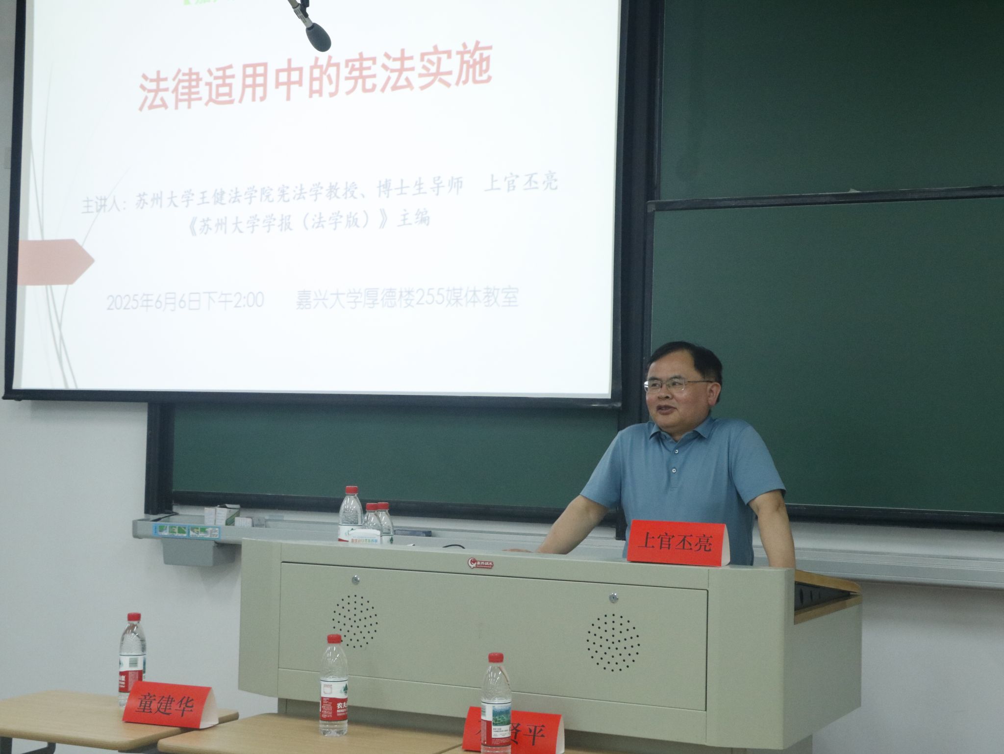 6月6日下午,苏州大学二级教授、宪法学与行政法学博士生导师、《苏州大学学报(法学版)》主编上官丕亮应邀来公司交流并作题为“法律适用过程中的宪法实施问题”的学术讲座。讲座由公司党委书记童建华主持,法学类专业40余名师生到场聆听。