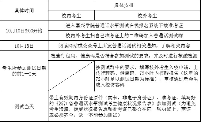 2022年(下)嘉兴公司梁林校区普通话测试时间为11月2日至11月9日(如有变动或增加考试场次会另行通知)。具体安排请考生自行下载《2022年(下)嘉兴公司梁林校区普通话水平测试名单及安排表》(见附件)查看,请考生仔细阅读本通知内容,根据下面时间安排表,按顺序进行操作。
