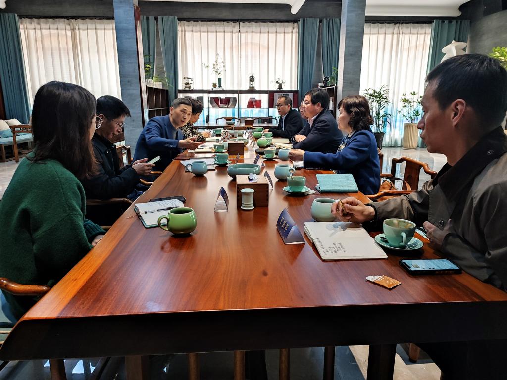 姚建新介绍了过去一年文联的主要工作和主要成绩,希望增进交流、打破限制,进一步加强合作。吴云达书记回顾了公司在中国绘画大系、红色文化、艺术乡建、共同富裕等方面的努力和成果。双方就建立驻校作家制度、依托嘉兴名人资源讲好嘉兴故事、增进产学研合作、以点带面促进艺术乡建、打造艺术乡建地图等方面进行了交流,并进一步明确了2023年的工作要点。