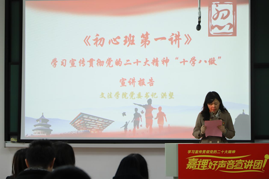 初心后浪宣讲团、初心工作室党支部成员在认真学习二十大报告时,还结合团队优势,做好一名红船旁的宣讲员,以青春之名将党的故事传播到祖国的角角落落。
