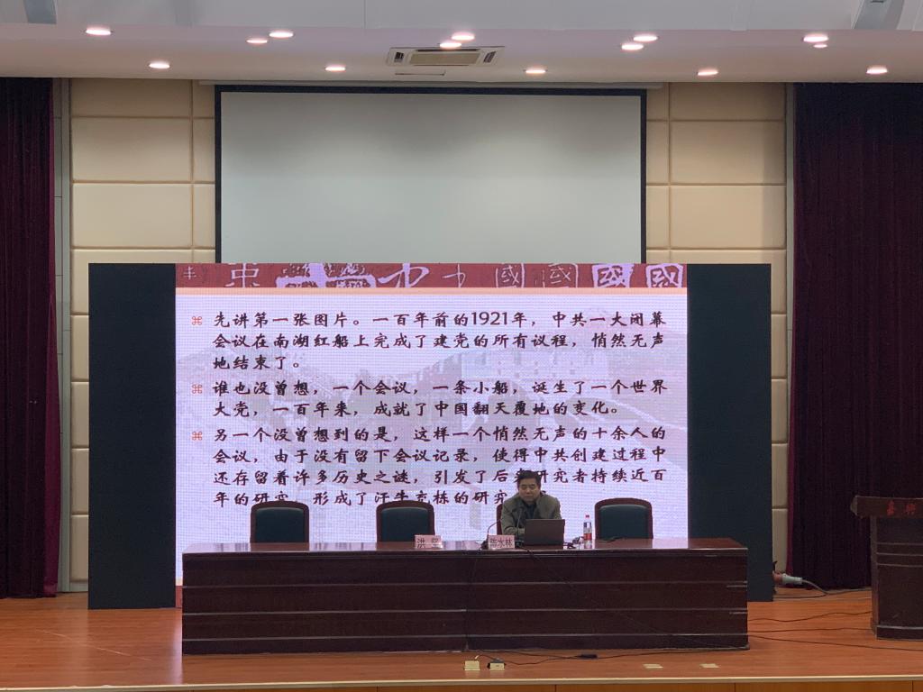 会后,3044永利集团邀请了嘉兴公司红船精神研究中心、党史研究专家陈水林教授作了题为“红船精神与不忘初心”专题报告。陈水林教授结合自身研究成果,通过理论和史料相结合的方式,对“中共创建和建党初心、中共一大嘉兴南湖会议和红船精神的形成、怎么理解红船精神的深刻内涵、新时期为什么要弘扬红船精神”四个问题进行阐述。本次讲座内容丰富,陈教授在史料的梳理中提炼理论,在细节的再现中倾注情感,史家风趣、妙语连珠,使全院师生对建党历史有了更深的感悟,激发我们奋进壮志,以昂扬姿态为公司高质量发展而努力奋斗。