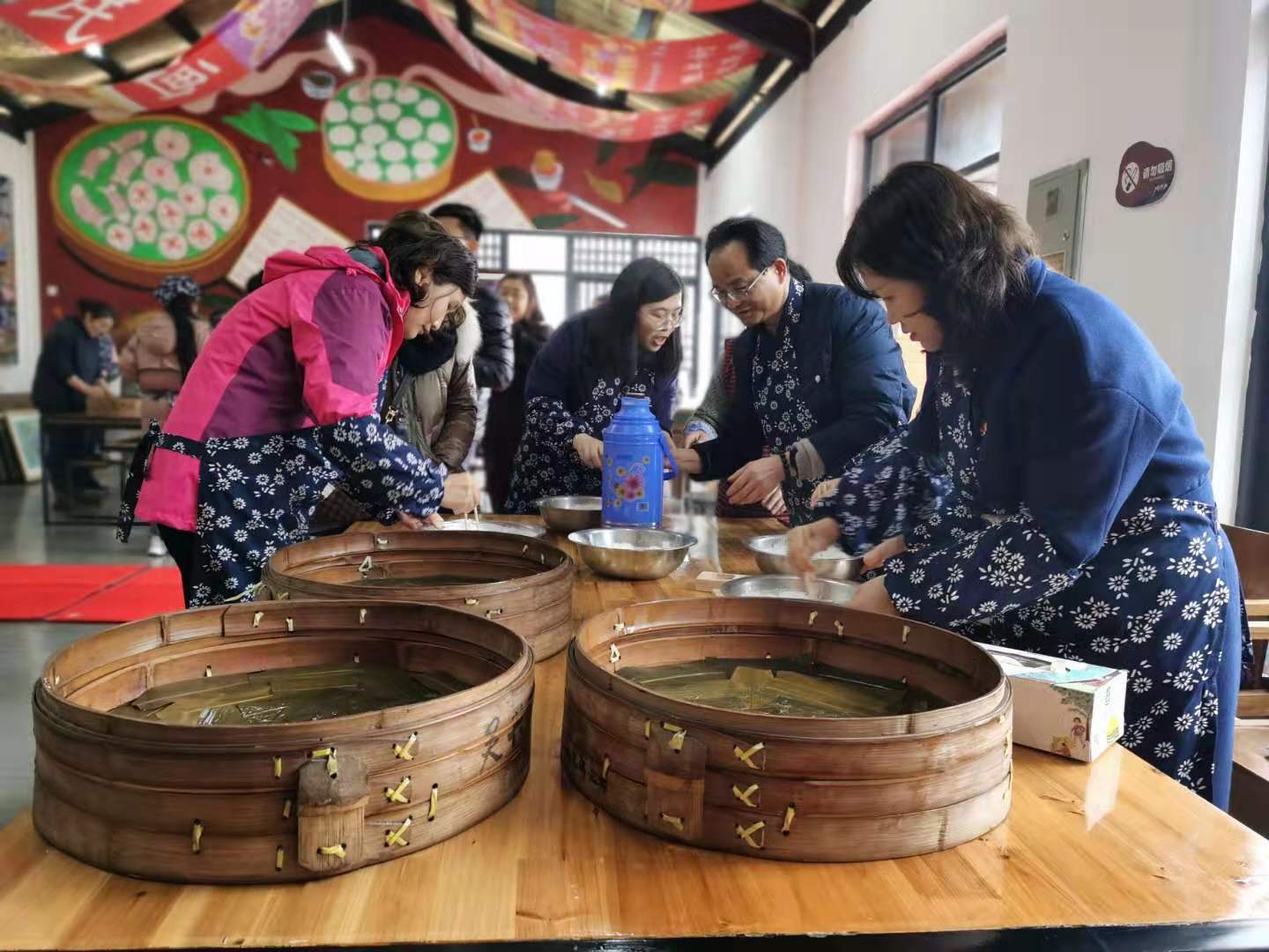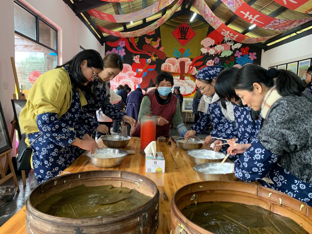 一方水土养江南,水美物丰出美食。糖糕是胜丰村的传统美食,更是秀洲区非遗技艺中的一个代表。油车港镇的糖糕板雕刻技艺被列为市级非物质文化遗产。今天,女教职工们在老师傅的指导下,撸起袖子、系上围裙,做起糖糕,尽情体验非遗文化的魅力,忙活得不亦乐乎。