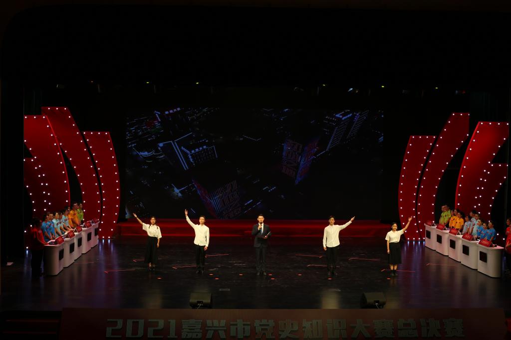 9月18日下午,为庆祝中国共产党成立100周年,扎实开展党史学习教育,“百年征程 红船起航”2021嘉兴市党史知识大赛总决赛在嘉兴市文化艺术中心举行。本次党史知识大赛中还融合了非常丰富的艺术形式,包括跟着经典音乐学党史、跟着全国美展学党史、跟着情景诗歌学党史三个环节。
