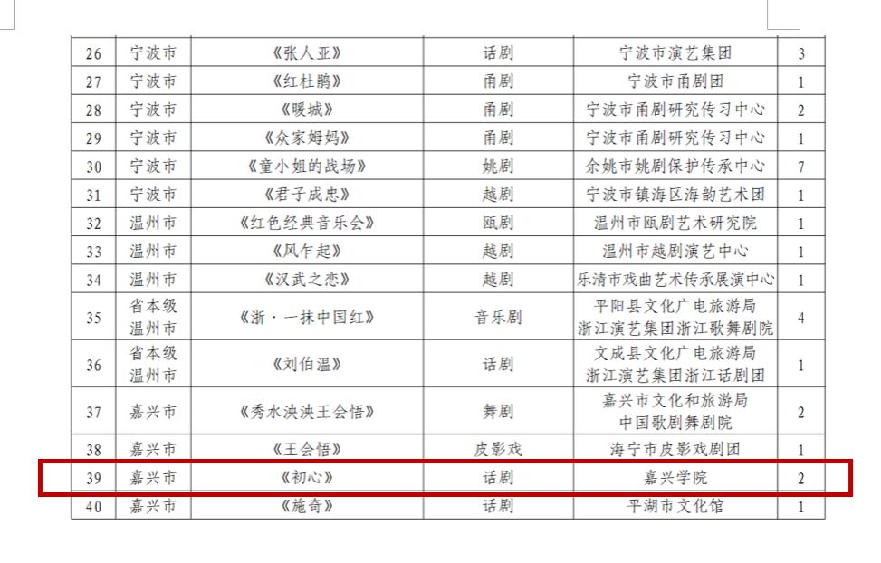 为充分发挥优秀文艺作品的引领示范作用,以艺术的形式唱响主旋律、传递正能量,为庆祝建党百年营造喜庆热烈的文化氛围,5月以来,由中共浙江省委宣传部指导、省文化和旅游厅主办的浙江省庆祝中国共产党成立100周年优秀文艺作品展演展示活动陆续在全省各地联动开展。公司原创红色话剧《初心》入选百场优秀舞台艺术作品展演名单并进行展演多场。